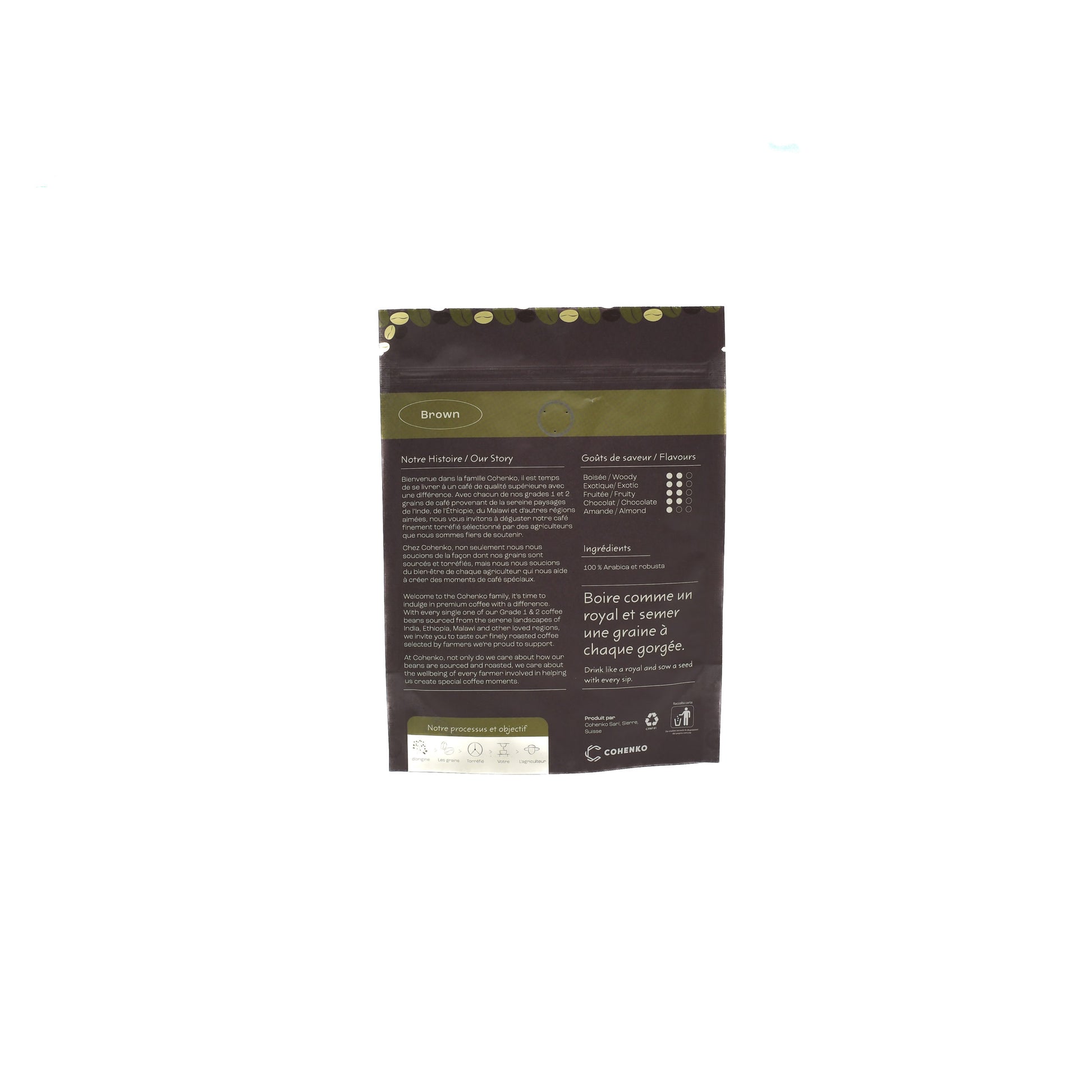 This brown roasted bean releases a fruity chocolate and almond flavour for long lasting coffees. Roasted at low temperatures, this coffee offers consistency in body and taste when brewed at the right temperature.