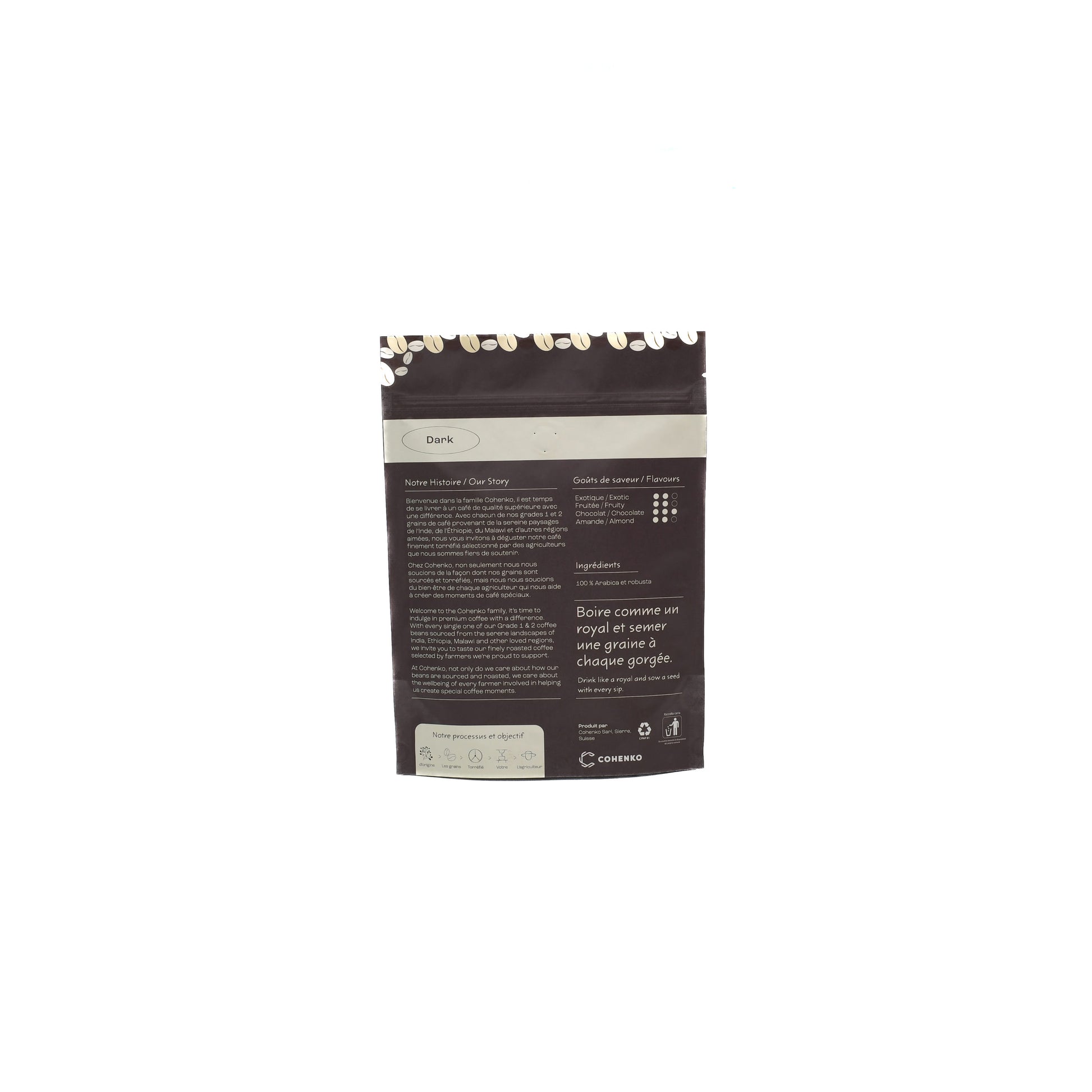 Roasted at temperatures above 190°, this dark-roasted coffee offers the consumer a good taste of chocolate and almond.