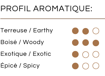 A unique blend of highly aromatic Robusta beans from the Asian and African continents. This blend gives an earthy, woody, exotic and spicy flavour and a unique strong coffee taste. Puissance : fort