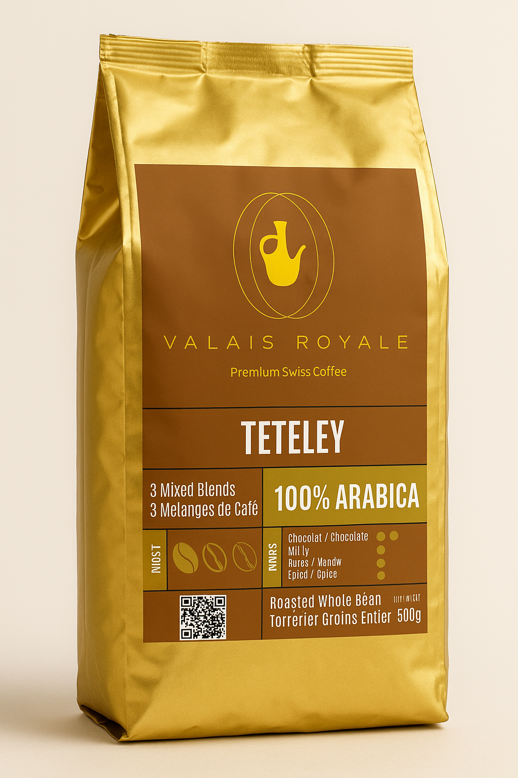 Un mélange de 3 grains Arabica torréfiés en brun avec un